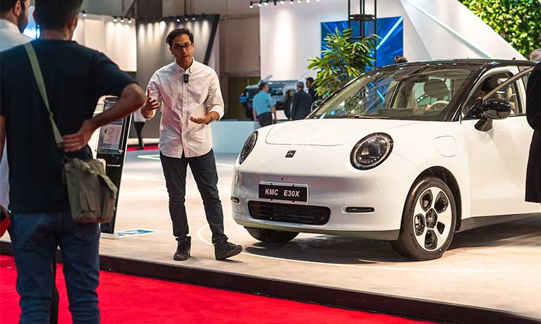 در اولین روز از نمایشگاه تحول صنعت خودرو، غرفه کرمان موتور با توجه به معرفی جدیدترین محصول خود یعنی KMC E30X در کنار سایر محصولات برقی خود، با استقبال خوب خبرنگاران و فعالان این حوزه همراه شد که بسیاری از نگاهها به خودروی برقی جدید این شرکت، E30X جذب شد.