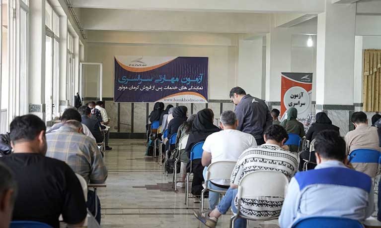 در این آزمون 843 نفر از 110 نمایندگی خدمات پس از فروش در پست های کاری کارشناس فنی، کارشناس پذیرش، کارشناس ارتباط با مشتری، برق کار، مکانیک، جلوبندی کار، امدادگر، پذیرشگر و انباردار حضور یافته اند.